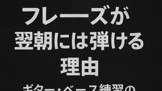 ギター徹夜して弾けなかったフレーズが翌朝弾ける理由|ギター・ベース練習の不思議な現象 こんにちは。shunです。ギターやベースを練習していると、こんな経験をしたことはありませんか? 昨日の夜、何時間も同じフレーズを練習したのにまったく弾けなかった。ところが翌日の朝、自然に指が動いて普通に弾けてしまった。 ... 2025.09.23ギターベース